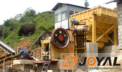 顎式破碎機(jī)的結(jié)構(gòu)主要有機(jī)架、偏心軸、大皮帶輪、飛輪、動顎、側(cè)護(hù)板、肘板、肘板后座、調(diào)隙螺桿、復(fù)位彈簧、固定顎板與活動顎板等組成,其中肘板還起到保險作用。該系列鄂式破碎機(jī)破碎方式為曲動擠壓型,電動機(jī)驅(qū)動皮帶和皮帶輪,通過偏心軸使動顎上下運(yùn)動,當(dāng)動顎上升時肘板和動顎間夾角變大,從而推動動顎板向定顎板接近,與此同時物料被擠壓、搓、碾等多重破碎;當(dāng)動顎下行時,肘板和動顎間夾角變小,動顎板在拉桿、彈簧的作用下離開定顎板,此時已破碎物料從破碎腔下口排出,隨著電動機(jī)連續(xù)轉(zhuǎn)動破碎機(jī)動顎作周期性的壓碎和排料,該破碎機(jī)實現(xiàn)批量生產(chǎn)。